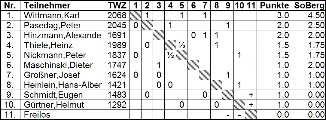 Nachfolgend die Ergebnisse der Runden 1 bis 3.