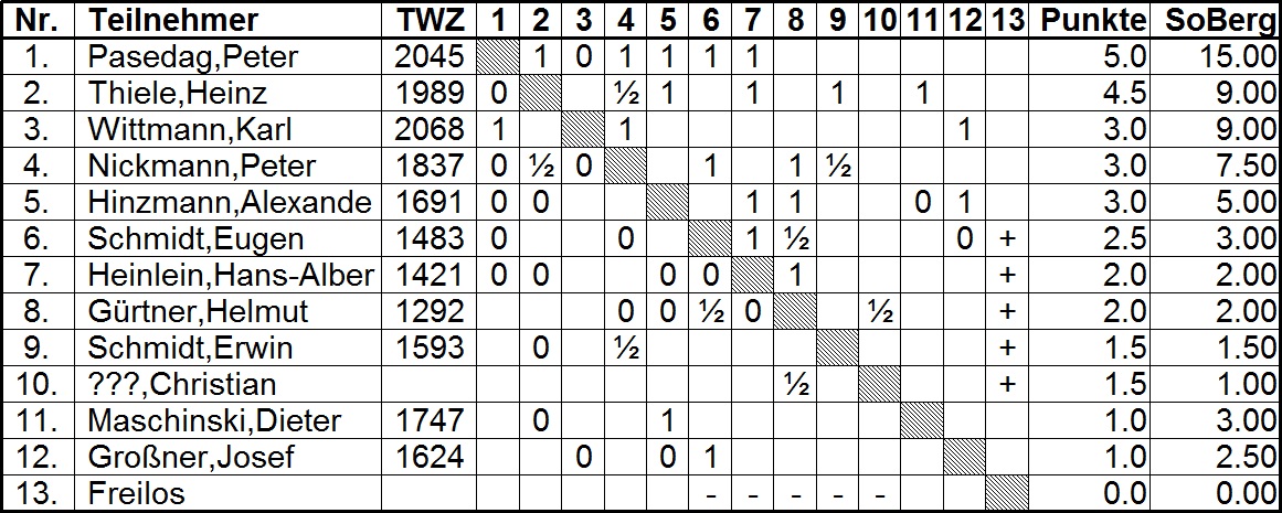 Nachfolgend die Ergebnisse der Runden 1 bis 6.