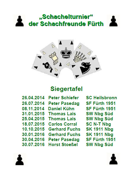 (Angaben gem. § 6 TDG) Schachfreunde Fürth 1951 e.V. 1. Vorsitzender Bernd-Dieter Maschinski Beethovenstraße 3 91448 Emskirchen Email: vorstand [auf] schachfreunde-fuerth [dot] de BSB-Nr. 0201 02 006 BLSV-Nr. 50 917 Eingetragen im Vereinsregister Nr. 1255 AG Fürth weitere Info: siehe Vorstandschaft
