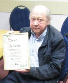 Seine Gesundheit ließ es zuletzt nicht mehr zu, eigenständig zum Schach zu kommen um einfach wieder „Hallo“ zu sagen oder eine Partie Schach zu spielen. Die Schachfreunde ehrten Franz persönlich zur Jahreshauptversammlung 2017 für die 50-jährige Mitgliedschaft und als Schachfreund mit drittlängster Mitgliedschaft bei der diesjährigen Jahreshauptversammlung auch zum Ehrenmitglied.